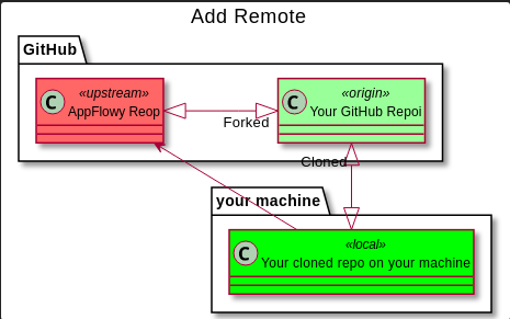 The AppFlowy project repo is now referred to as "upstream" Your GitHub project is now referred to as "origin"