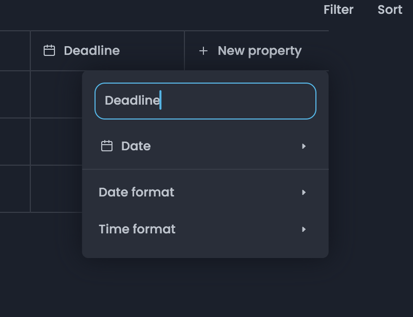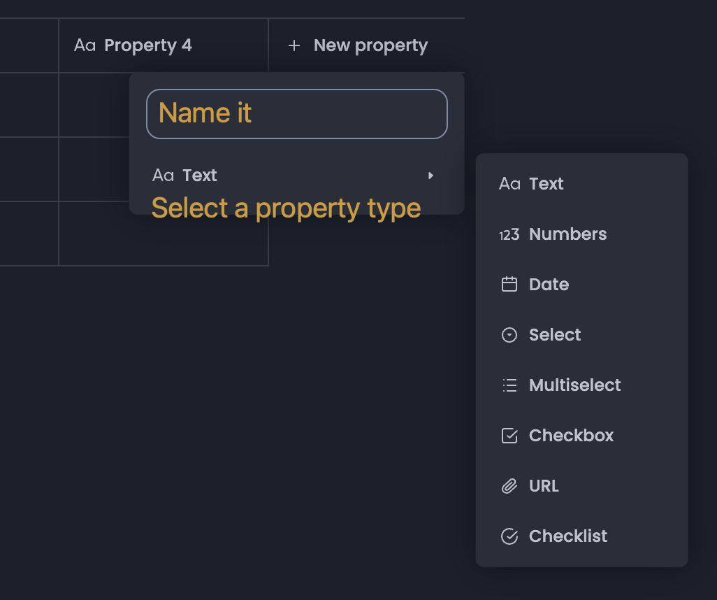 * Click anywhere outside the dropdown menu where you edited the property name to close up the menu or simply pressing `ESC`