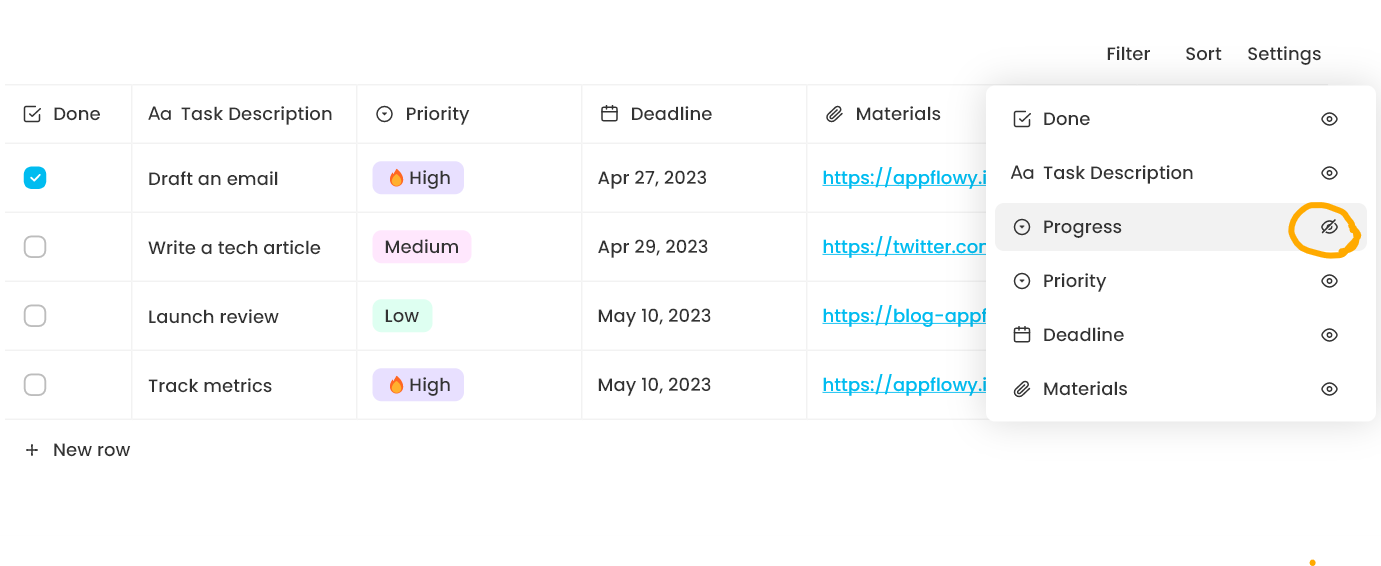 * Toggle on the 👁️ icon next to "Progress" to show it